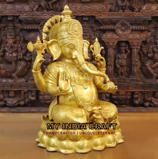 12" Ganesha brass idol