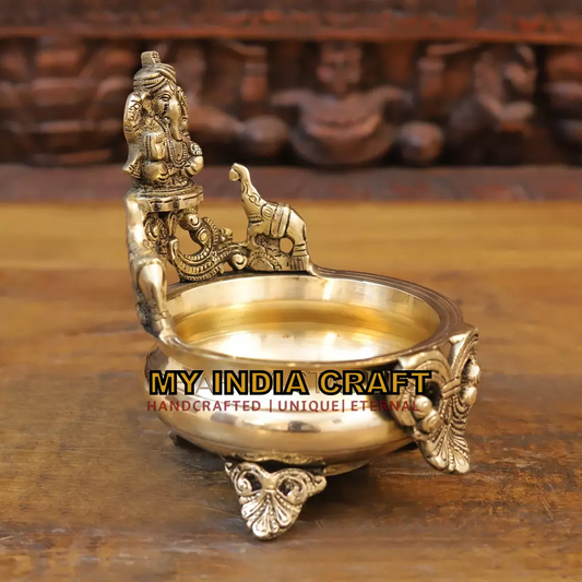 8" Urli with elephants Ganesh