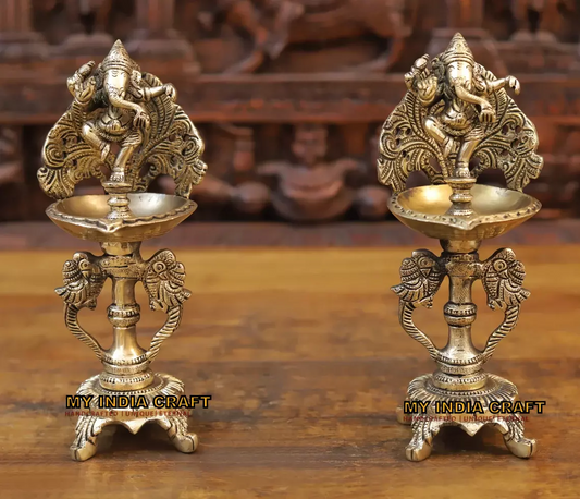 9.5" Brass diya with Ganesh