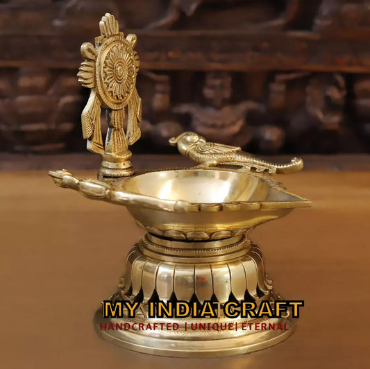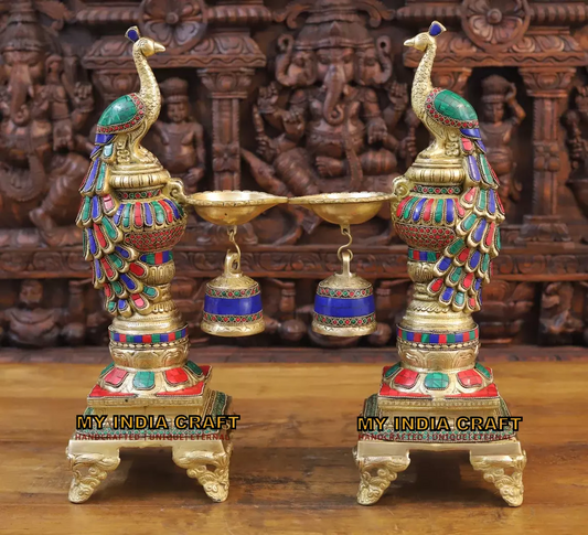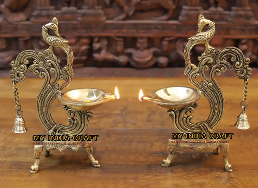 14" Peacock Diya with ghungroo stand