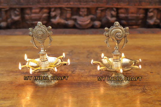7" Brass Lakshmi Diya (set of 2)