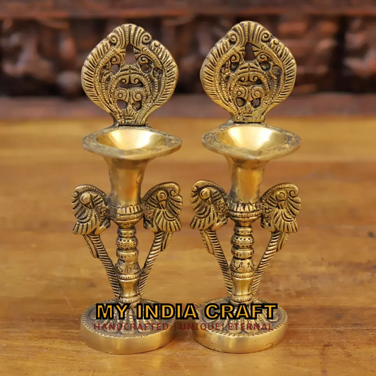 9" Parrot Diya stand brass (set of 2)