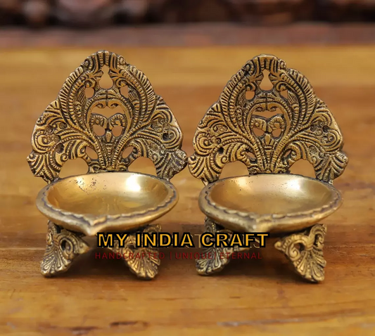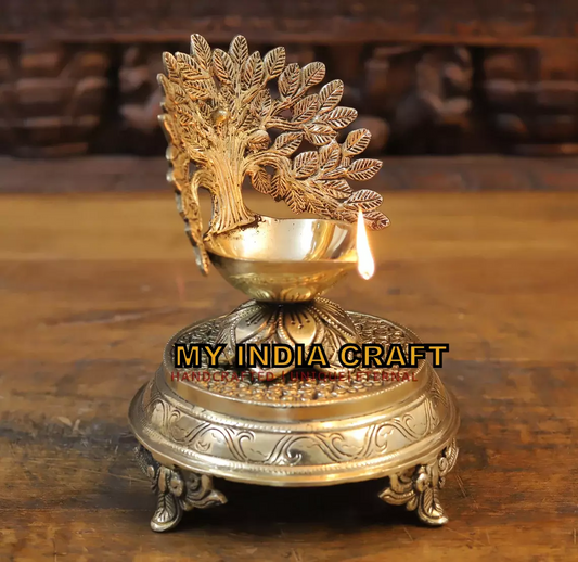 6.5" Brass tree diya (set of 2)