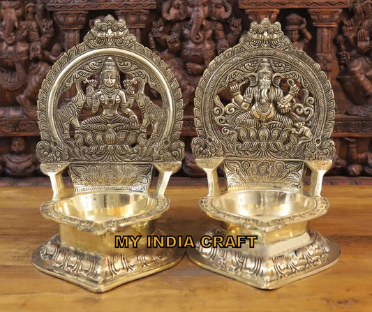 17" Brass Ganesh Lakshmi diya set (set of 2)