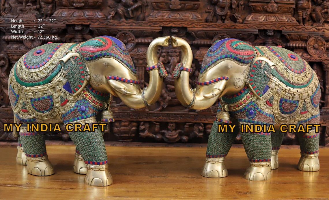 Bring home this beautiful and intricately carved statue of an elephant from My India Craft. This statue of the carved elephant will give your home a traditional touch. Elephants have been depicted in mythology and symbolism. They are the symbol of power and affluence. Any elephant statue placed in your abode or office brings in the most strong bond in family and employees. It helps build the strong foundation of relationships too. This brass sculpture elephant denotes those elephants who have a great place in the daily lives of millions of Indians who worship them as the symbols of their deities. The Hindu God Ganesha also has the head of an Elephant. This brass statue is solid and sturdy, also very easy to clean. The Hindu God Ganesha also has the head of an Elephant. This brass statue is solid and sturdy, also very easy to clean. An appealing option for your bedroom accent or adorning your bookshelf. It can be a perfect gift for someone who loves animals. An appealing option for your bedroom accent or adorning your bookshelf. It can be a perfect gift for someone who loves animals.